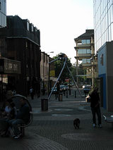 is nearly all pedestrian walkways with shops, etc., and it is not